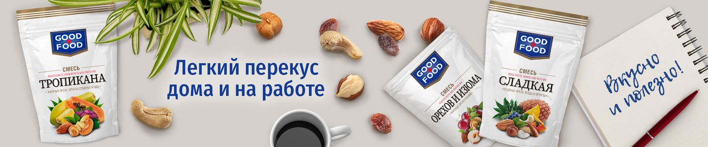 Здравствуйте! Спасибо за отличный продукт! Год назад попробовали Ваши чернослив и абрикос GOOD FOOD. Очень понравилось качество и замечательный вкус продуктов. Заказываем сухофрукты теперь только у Вас.